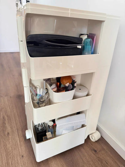 Smooth Rolling & Clutter-Free The casters glide super smoothly, and the drawers open without any sticking. I finally managed to organize all my cosmetics, and everything feels neat and easy to access now. Really happy with how functional and effortless this piece is to use.
