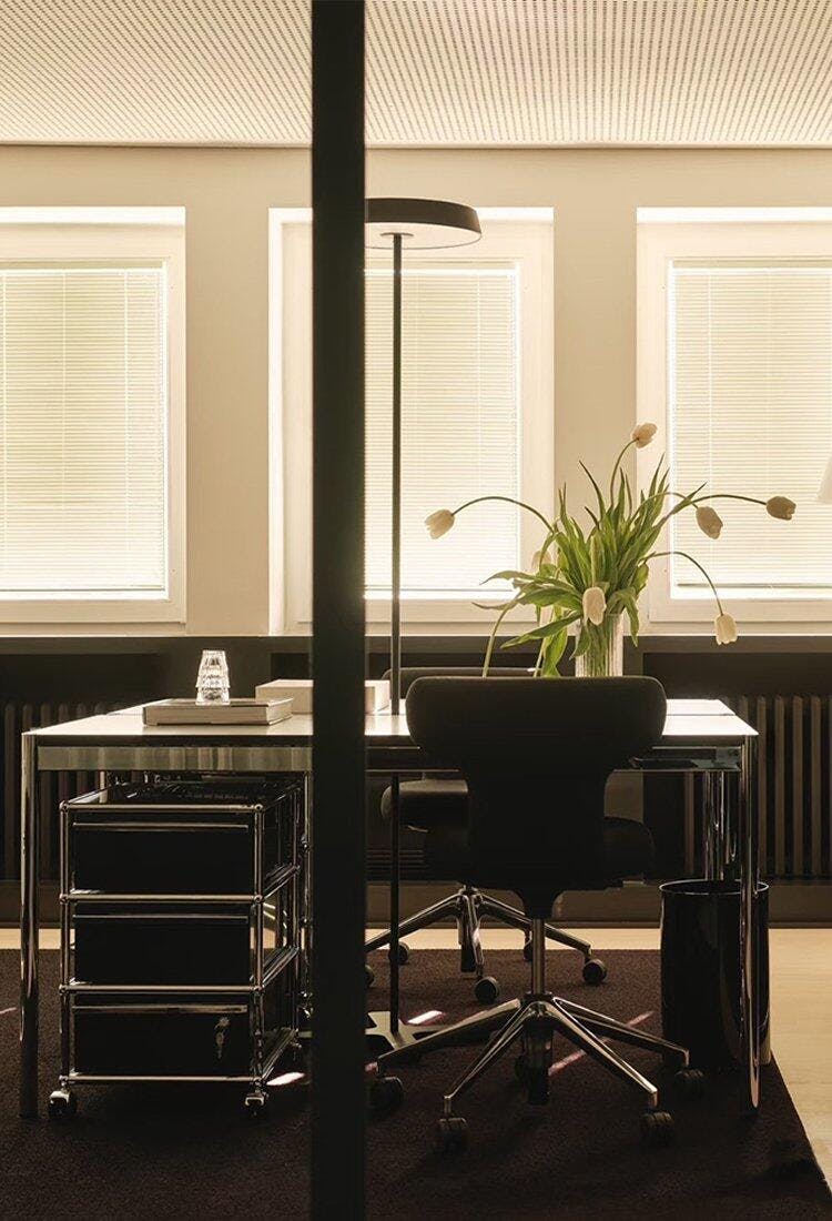 Fritz Haller’s design philosophy revolves around the principle of adaptability. He believed that furniture should be functional and flexible enough to fit various environments, from office spaces to private homes. His designs often emphasize simplicity and clean lines, making use of industrial materials to create durable, versatile, and aesthetically pleasing products.