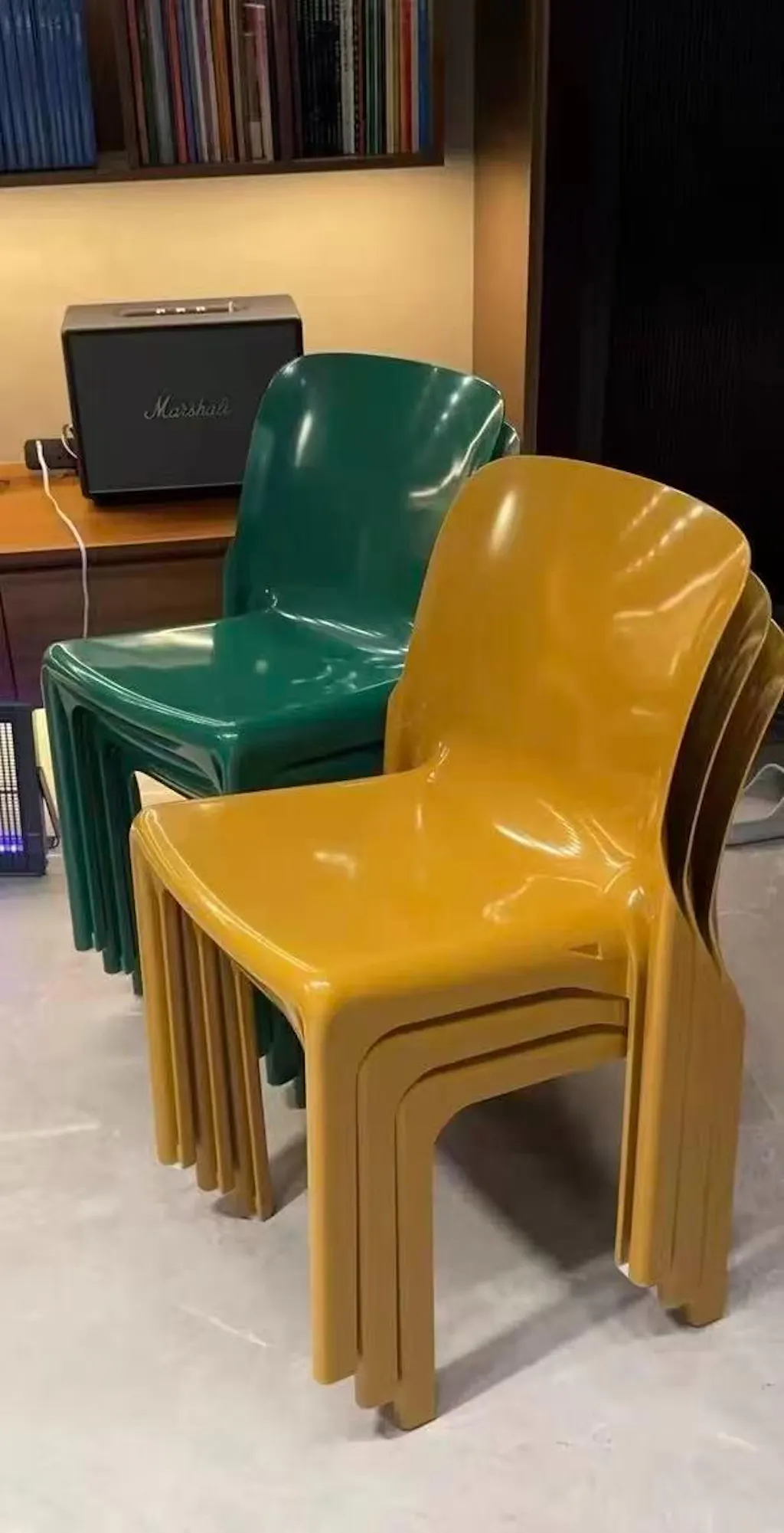 Crafted from high-quality molded materials, this plastic chair glows with sleek, Space Age confidence. The ergonomic curves of the seat and backrest cradle your body with intention, while notched legs add strength and subtle design detailing. Plus, the pop-tone colors feel anything but ordinary—more gallery-worthy than cafeteria. Light yet durable, it’s the perfect fusion of Italian elegance and everyday utility.