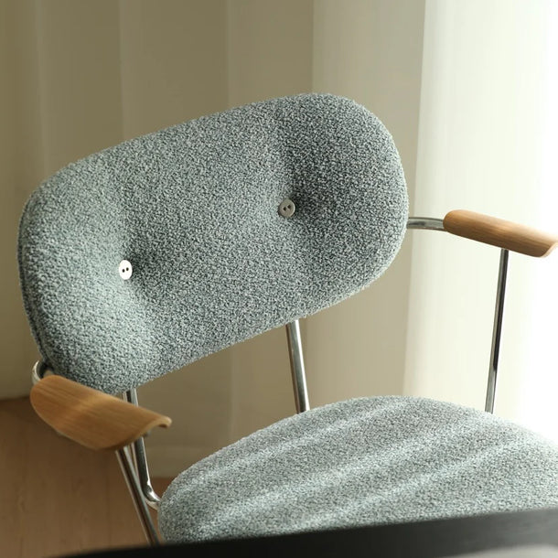As you can see in the close-ups, it's a deep, multi-tonal world you can get lost in. This rich texture does more than just please the eye—it invites touch, adds visual warmth, and beautifully softens the chair's clean, minimalist lines. Whether you opt for the crisp, granular feel of our 3D Bouclé or the deep, cozy softness of the Luxe Wool blend, 'Liv' becomes a sensory experience, a chair that feels as good as it looks."
