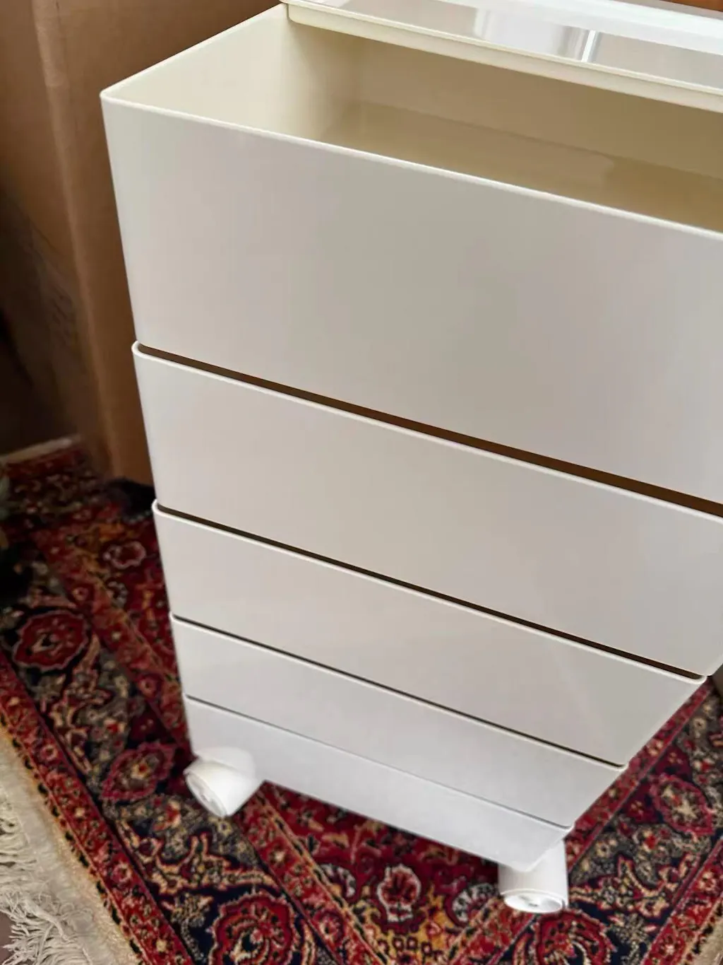 It performs like a rolling cart with drawers while keeping a light, mobile feel.