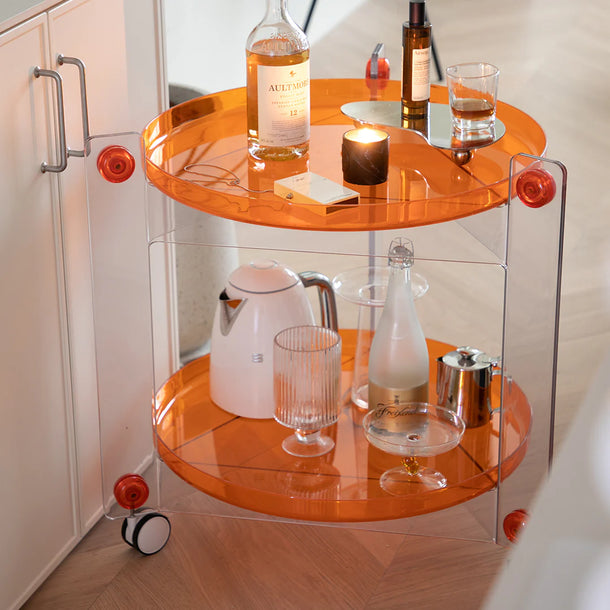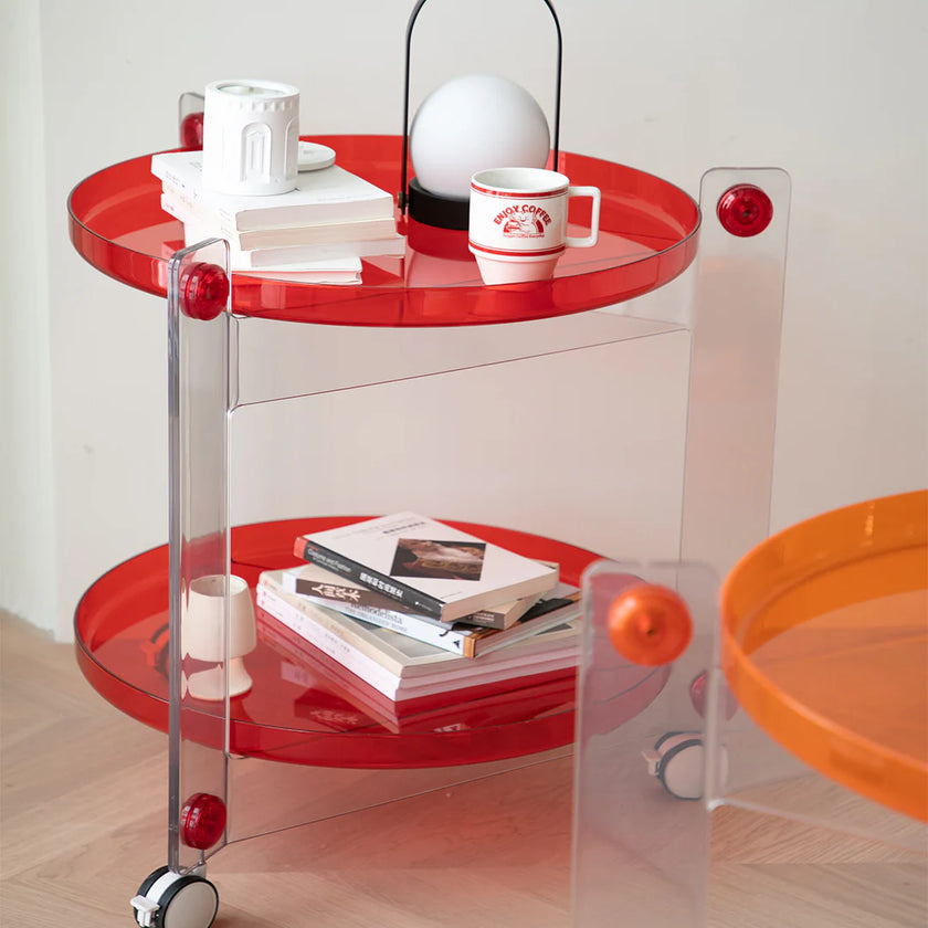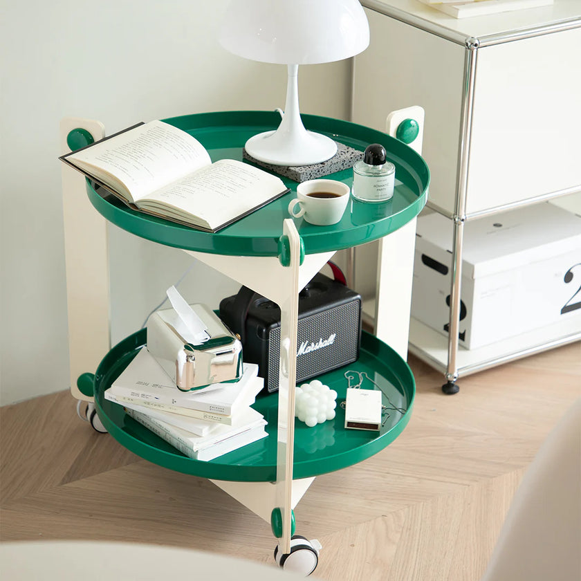 Made from durable ABS plastic, it features two removable trays that double as a small side table or round side table when needed. The triangular frame locks the trays securely in place, while three quiet wheels allow for smooth movement throughout your home. Whether styled as a minimal black side table in a lounge, or a white side table in a bright kitchen, it blends effortlessly with any decor.