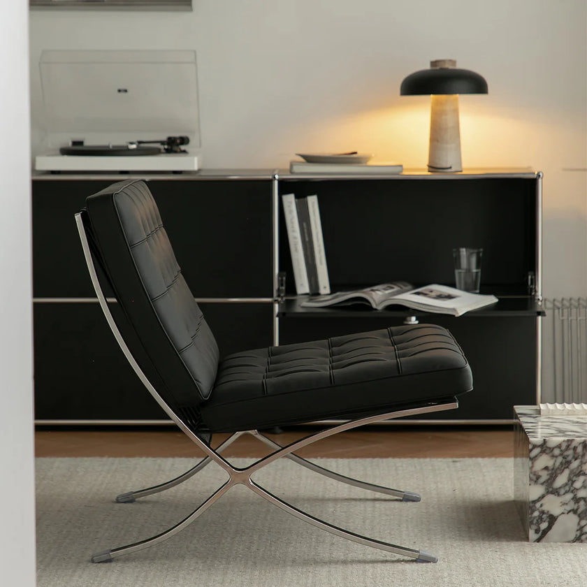 Designed in 1929 by Ludwig Mies van der Rohe for the German Pavilion at the Barcelona International Exposition, the Barcelona Chair isn’t just furniture—it’s a manifesto in steel and leather.