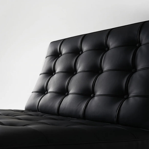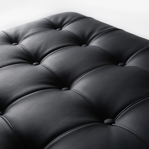 The seat and back are divided into 20 perfectly aligned leather squares, stitched with reinforced tension lines and finished with high-strength patented buttons. This tight geometric grid doesn’t just look refined—it holds its shape and sits like a dream: supportive without sagging, responsive without stiffness.