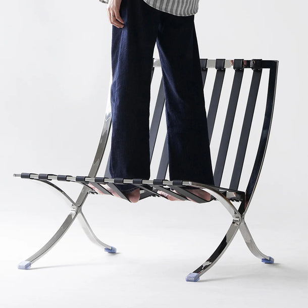 That iconic X-frame? It’s cut from solid 304 stainless steel, then mirror-polished to catch just the right amount of ambient light. It’s not only striking but structurally sound—quietly anchoring the chair with poise and balance. Rubber feet protect your floors while keeping the frame exactly where it belongs.