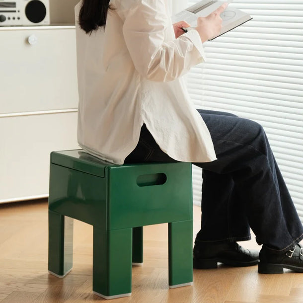 Drawing from the bold, geometric spirit of Pop Art and the Space Age, the "Magic Storage Stool" is more than just furniture; it is a building block for a curated life. We stripped away the unnecessary, leaving only clean, decisive lines and a silhouette that feels substantial yet modern. It plays a visual trick on the eye: appearing as a sleek, sculptural seat by your sofa or entryway, yet instantly transforming into a deep storage vault. It captures the essence of "living lighter"—where one object effortlessly performs the duty of two, adding a splash of heavy, vibrant color to your room while conquering the clutter.
