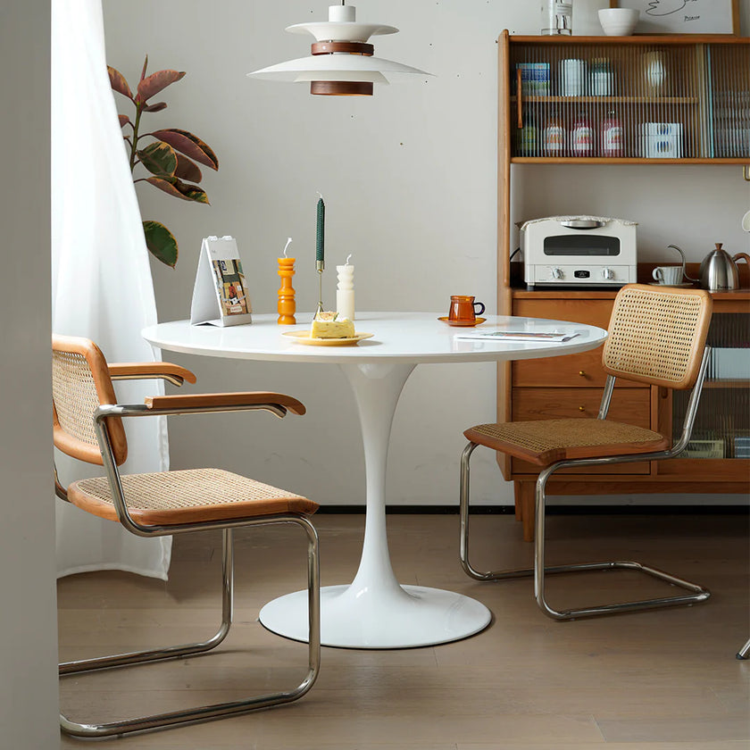 Originally envisioned by Eero Saarinen in 1956, the tulip table was his answer to the “ugliness” of traditional four-legged designs.