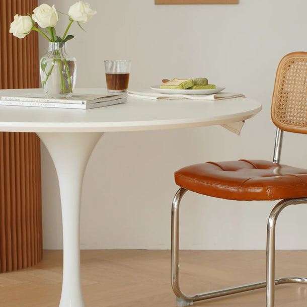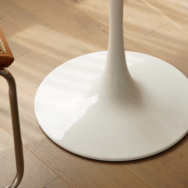 A single tone. Infinite compatibility. The all-white finish on this tulip table acts like the perfect backdrop—clean, quiet, and ready for contrast or complement.
